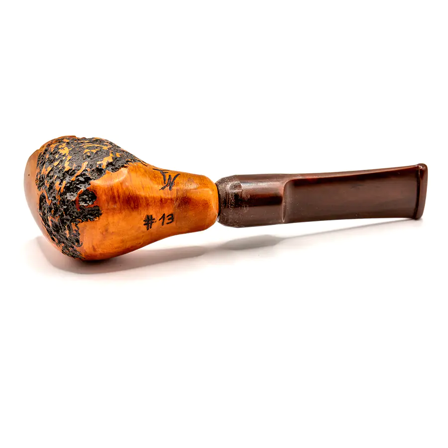 La Pipa n.13, forgiata dalle abili mani del maestro Fabre Natal, è una celebrazione dell’arte pipiera che unisce l’eleganza rustica con la bellezza intrinseca del materiale naturale.